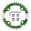 This durable and lightweight bike chainring is perfect for mountain biking or commuting. Made of high-quality aluminum alloy with a narrow-wide tooth design, it efficiently drives the chain forward without the risk of dropping off. The teeth are CNC machined for a smooth surface that resists corrosion, keeping gears running efficiently. Available in sizes ranging from 32t 34t 36t 38t teeth and compatible with 8, 9, 10, 11, and 12-speed drivetrains, it lets you customize your gearing for any terrain. At only 104mm in bolt circle diameter, it installs easily on most standard bottom bracket shells. Its integrated design and precision manufacturing ensure reliable performance mile after mile for cross-country, trail, or fat bike riding.