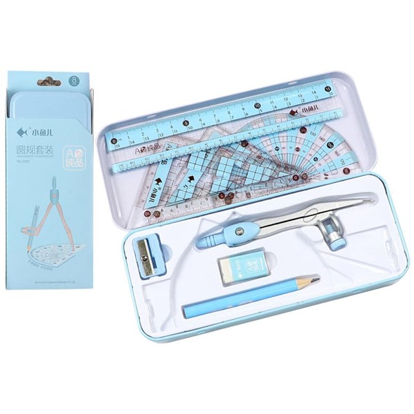 - 【Complete Package】: The set includes a pencil, pencil sharpener, two triangle rulers, a straight ruler, a protractor, a graphic compass, and an eraser, all neatly packaged in a durable and shatterproof iron case.