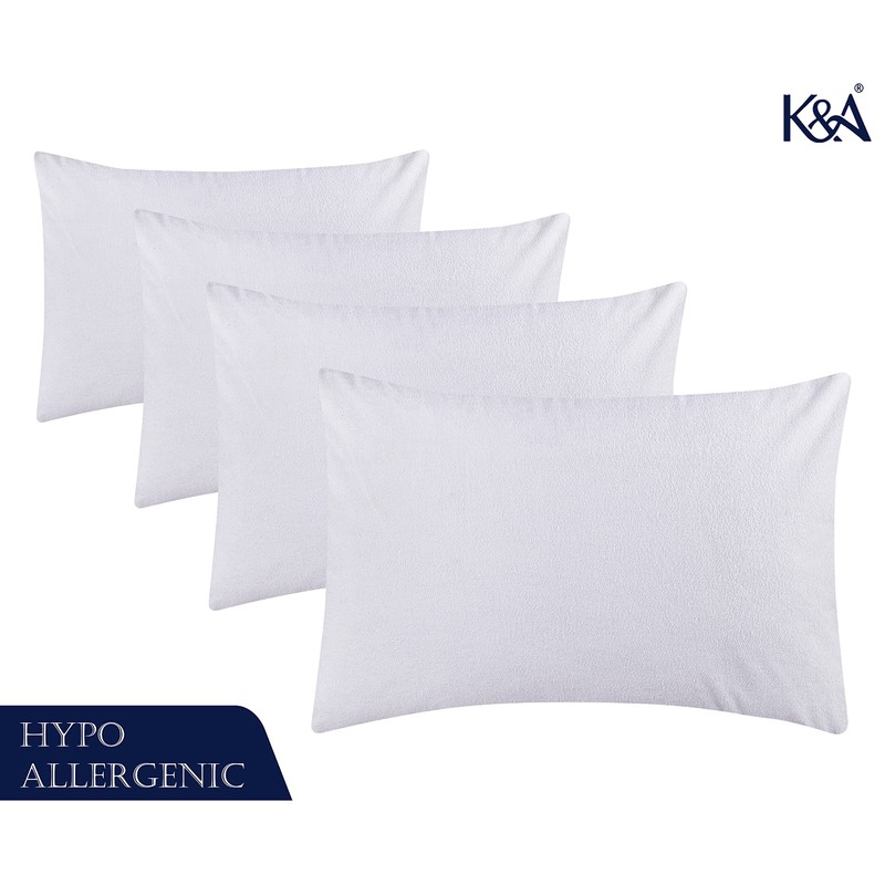K&A® Terry Waterproof Pillow Protectors 4 Pack | Ultrasoft, Breathable & Anti Allergy Pillow Cases | UK Standard 48x74 cm