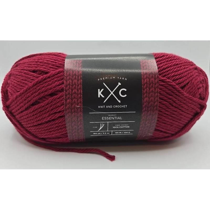 K & C Essential Yarn 100% Cotton Red Wood Color 100g/3.5oz 180yds/165m Light #3