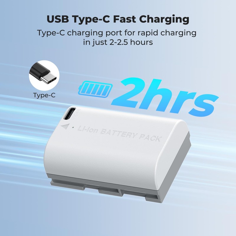 - Type C Direct & Fast Charging: Efficiently charge the LP-E6NH battery directly with no extra charger needed. With the included Type-C charging cable, fully charge one R7 battery in 2 hours. Plus the intelligent LED indicator displays the charging status: Red light for charging, Green light for fully charged.