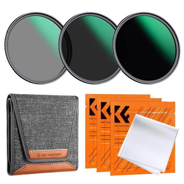 K&F CONCEPT 49-82mm ND8+ND64+ND1000 Lens Filter Kit - Optical Glass, High Definition, Multi-Coated, Waterproof, with Filter Pouch and Cleaning Cloths (D-Series)