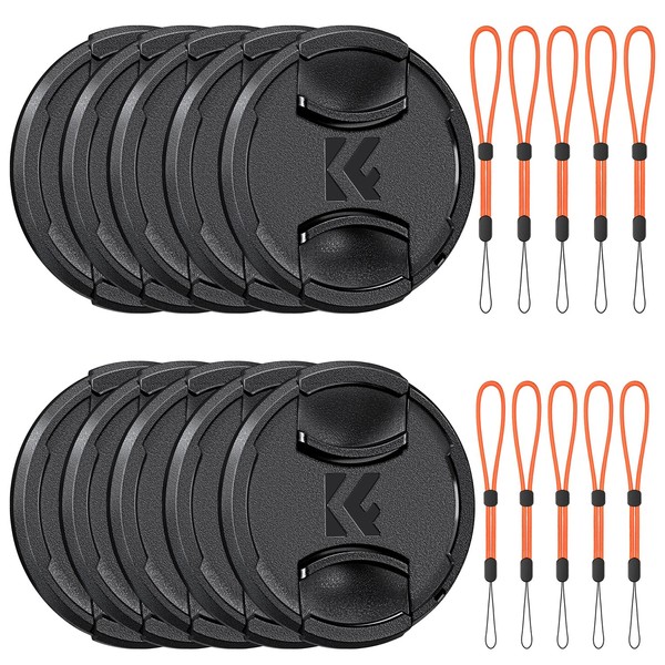 K&F Concept 77mm Lens Cap 10 Pack Snap-on Front Camera Lens Cover + Elastic Lens Cap Keeper Compatible with Canon Sony Cameras