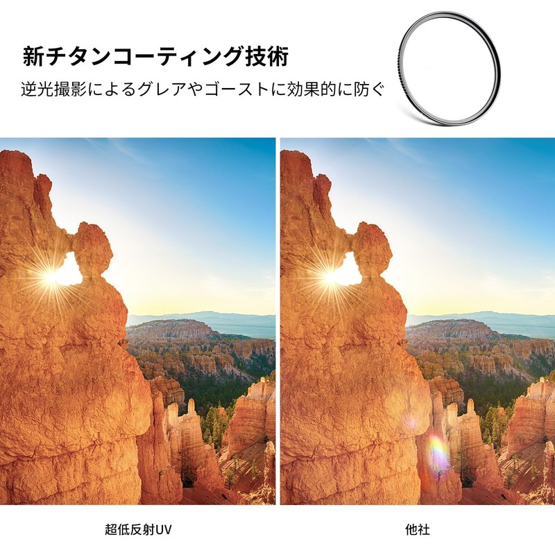 - 【Ultra Low Reflection】The reflectivity of the ultra low reflective UV filter is controlled by 0.1%, effectively reduce lens reflections and halo phenomenon, make your image more sharper and enhance contrast
