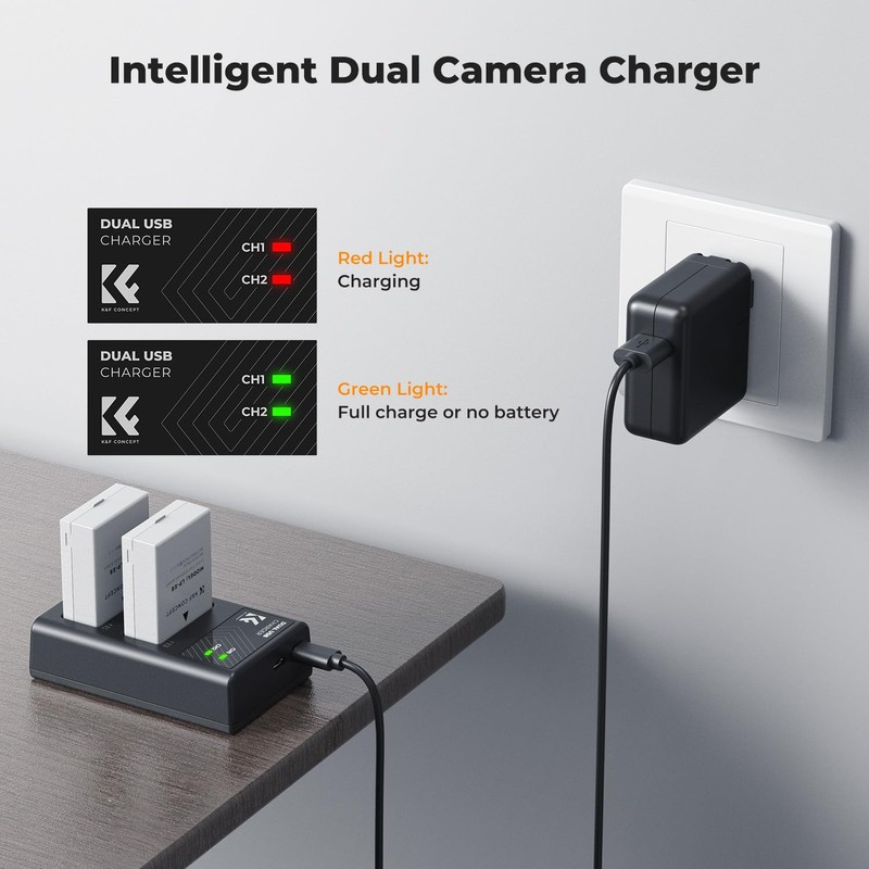 Dual-Slot Fast Charging: Charge two batteries simultaneously with the intelligent dual-slot charger, saving time and ensuring backup power is always ready for high-intensity shoots.