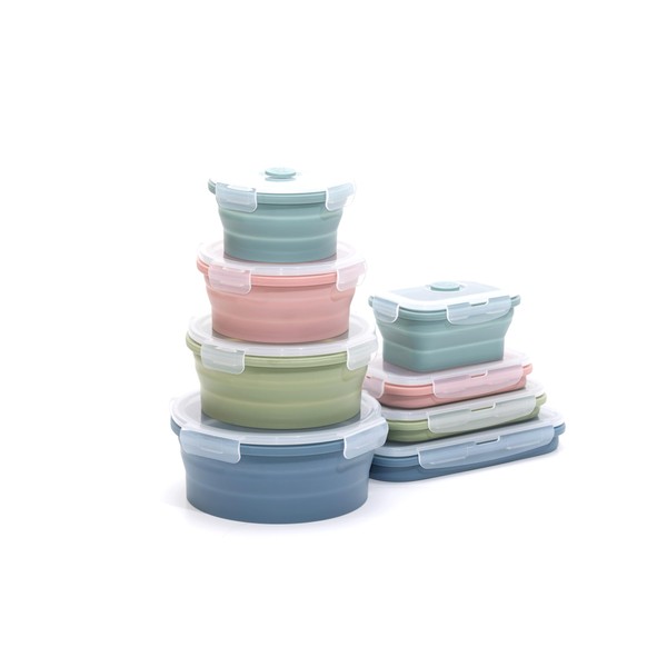 - K-HOME VT COLLAPSIBLE SILICONE FOOD STORAGE CONTAINER SET OF 8.