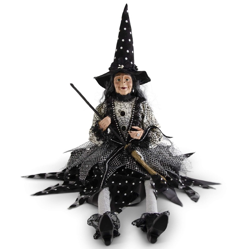 K&K Interiors 41993A 30.75 Inch Sitting Sabrina Witch with Broom & Polka Dot Hat, Black