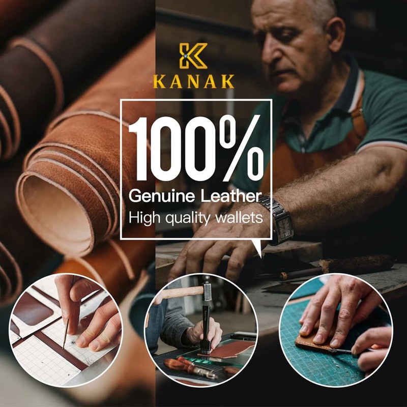 K KANAK -Prince Wallet, Genuine Leather Wallet,Bifold Men's Wallet, Safe Card Case, Versatile and Minimalist Wallet for Men, 3.94 inches x 3.74 inches x 0.89 inches (BLACK)