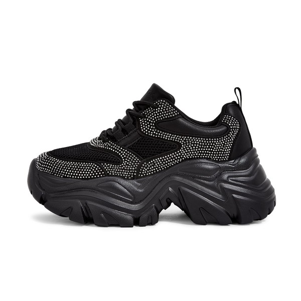 K KIP WOK Chunky Sneakers for Women Fashion Platform Rhinestone White Leather Casual Dad Shoes Comfortable Wedge Walking Sport Sneakers(Black Rhinestone,8.5)