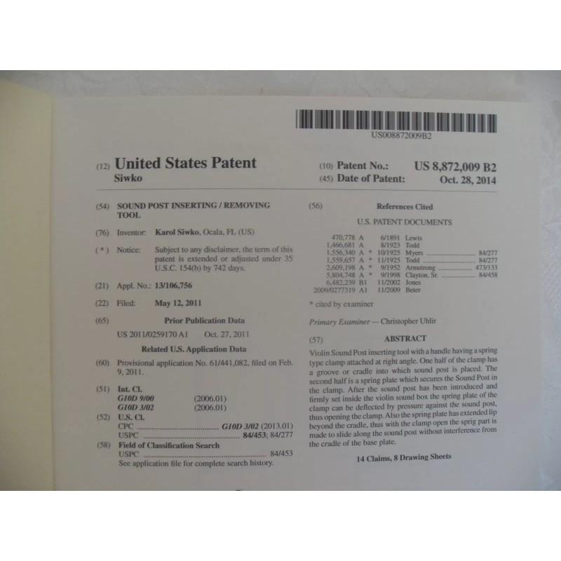 This amazing, patent tool is the most versatile setter. For use by professional, teachers and violin owners; easy to use, even for beginners.