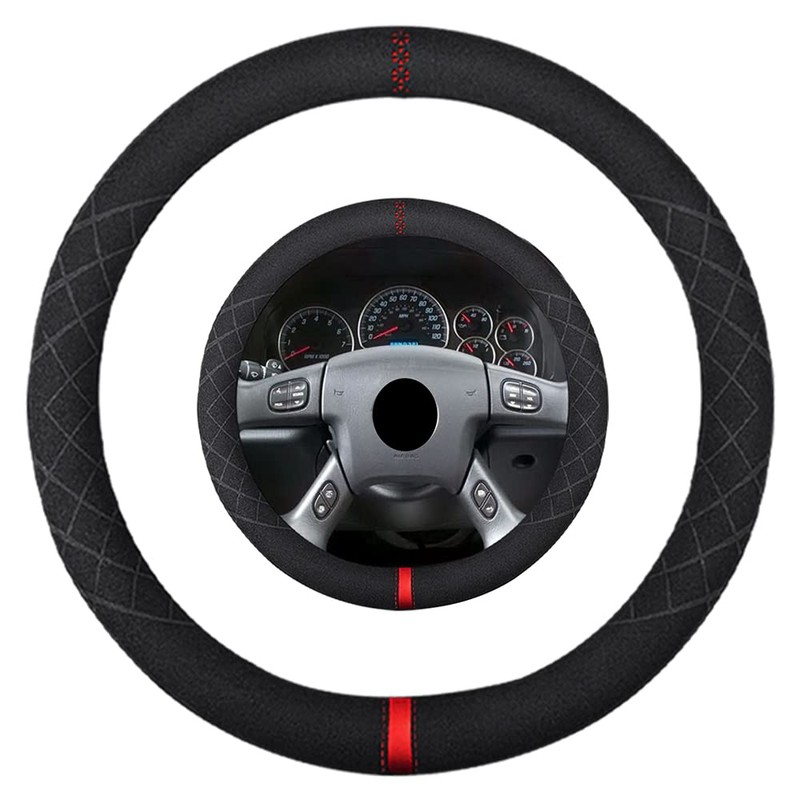 K LAKEY Suede Steering Wheel Cover,Compatible with GMC C K Series Envoy Savanna Van Sierra Yukon Acadia Suede Leather Sport Non-Slip Wheel Cover Car Interior Accessories 15 inch for Man and Women