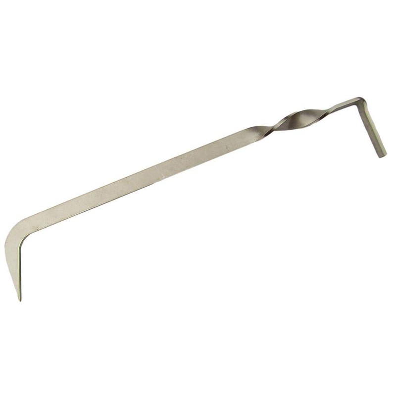 This unique double ended crevice tool is made by K&M Krushers here in Oregon. It is 12" overall long, The claw hook end is 2-1/8" tall. The claw is 1/2" x 1/8" Thick & the other end is a ridged scoop to plow out material. The double twist at the end is also a handy grip when scraping those crevices.