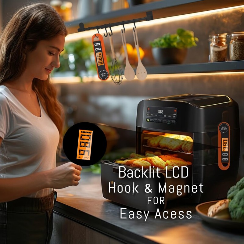 - ๐ ๐๐๐ก ๐๐๐๐ง๐จ๐ฅ๐๐ฆ โ This Digital Thermometer Cooking Has Waterproof Ratting, Large Display with Back Light, Auto ON/OFF, 3 Minutes Auto Shutdown, Lock Temperature & Auto Screen Rotating, Calibration Feature for Longevity, Build in Magnet, Anti-Skid & Hanging Hole.