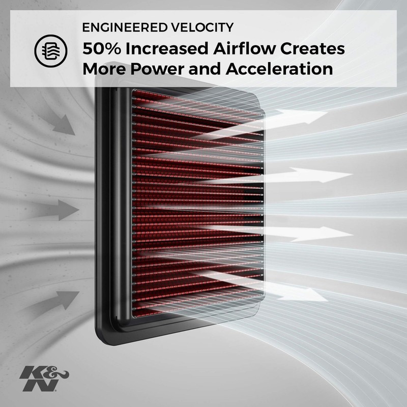 - ENGINEERED POWER: State-of-the-art filtration media provides up to 50% more airflow than disposable paper filters to increase power and acceleration- clogged or dirty air filters can reduce your vehicle’s acceleration by up to 10%