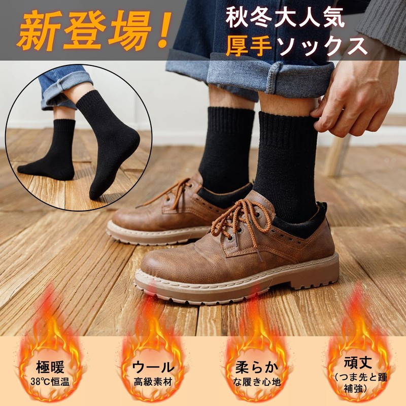 日常生活、通勤、旅行やビジネスに最適です。メンズソックスはちょうどいい長さで、立ったり座ったりしてもズボンの裾から肌が見えず、仕事の邪魔になりません。冬に適した厚みで、いつでもどこでも足元を暖かく保ちます。ビジネスシーンやフォーマルシーンでも履きたい場合も最適です。