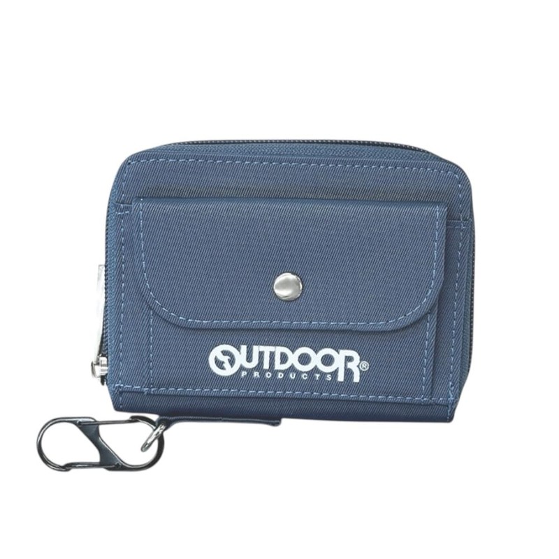 [K-PARTS] OUTDOOR アウトドア ポケットロゴ ラウンドファスナー折財布 メンズ レディース キッズ 男 女 ラウンドファスナー スポーツ シンプル 軽量 軽い 黒 グレー 紺 学生 プレゼント (ネイビー)
