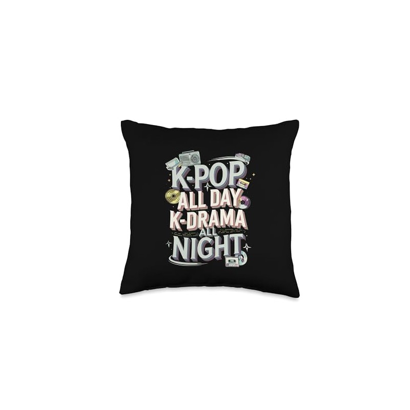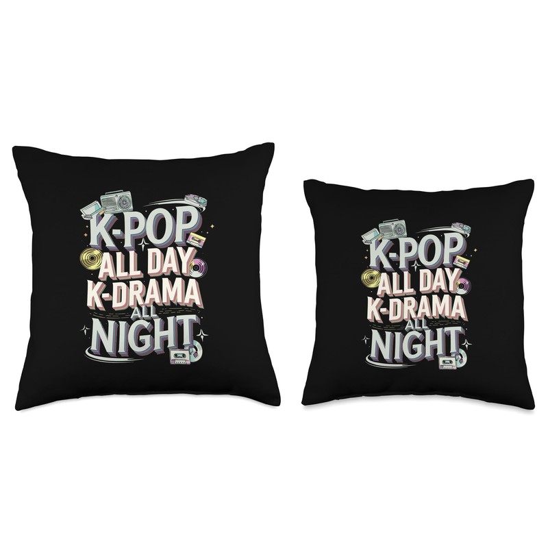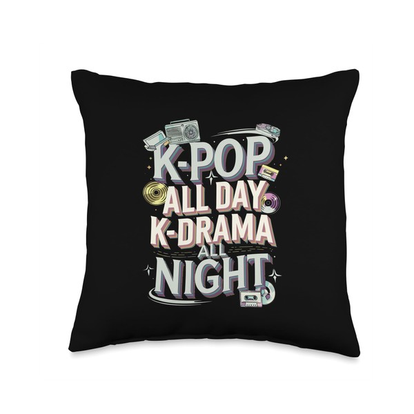 K-Pop All Day K-Drama All Night Fandom Throw Pillow