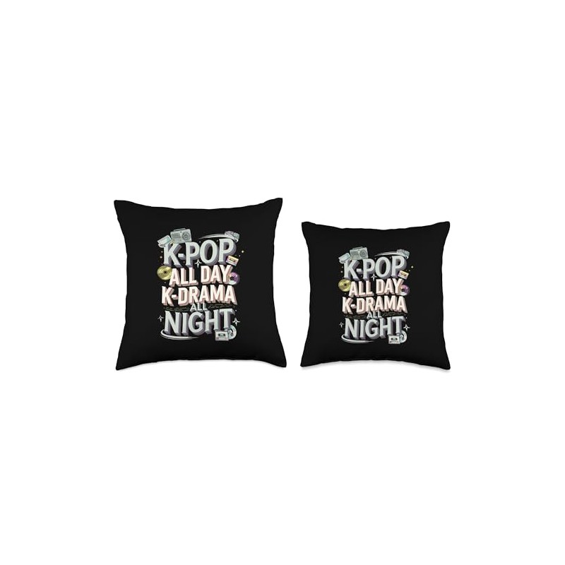 - Perfect for Korean entertainment fans, this bold design features "K-POP ALL DAY K-DRAMA ALL NIGHT" with playful icons, ideal for true K-culture stans.
