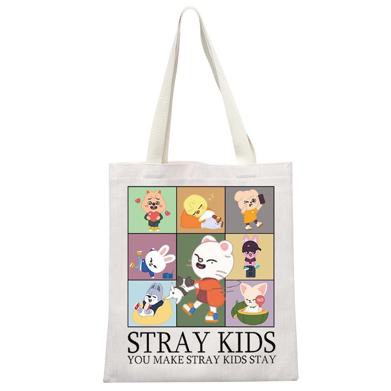 K-Pop Lover Gift SKZ Member Character Gift SKZ K-pop Boy Band Inspired Tote Bag for Fandom (Make Stray Tote CA)