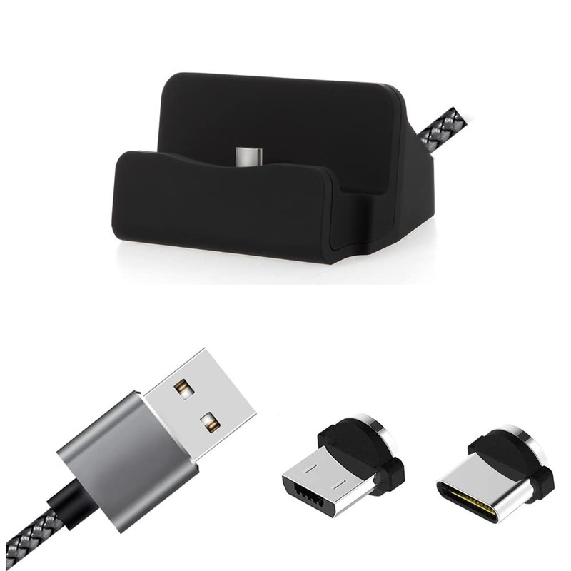 - Universal: With the docking station and its adapter set, you can charge or transfer data to any mobile phone with Micro USB and USB Type C. The magnetic connection ensures an uninterrupted connection- Protection: The USB input of the phone is protected. The adapter only needs to be plugged in once. This extends the life of the phone.