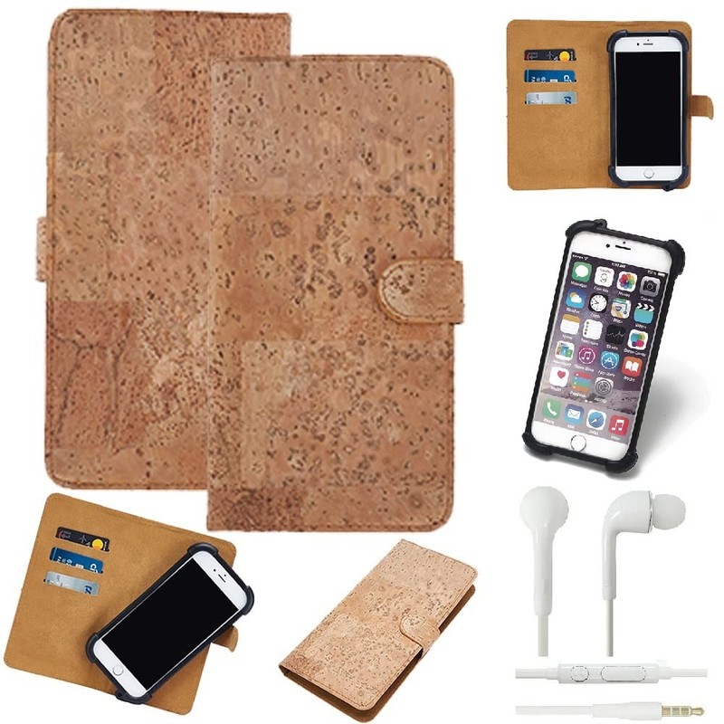 K-S-Trade Qualitativ & Innovativ Hülle Für Archos Oxygen 63 + In Ear Kopfhörer Kork Handyhülle Cover Schutzhülle TPU Case Bumper In Hellbraun,
