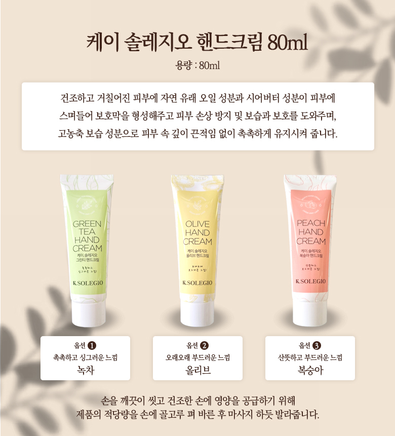 K Soleggio Hand Cream 80ml (3 Types) Option) 2-Olive 6ea