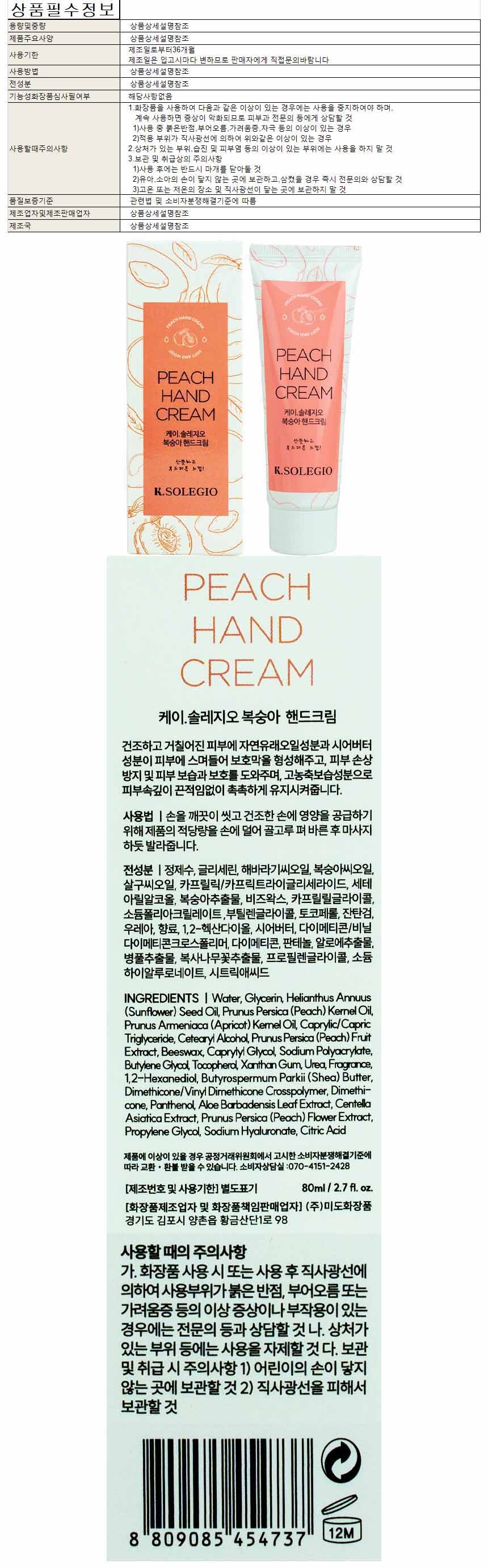 K.SOLLEZIO Peach Hand Cream 80ml 6ea