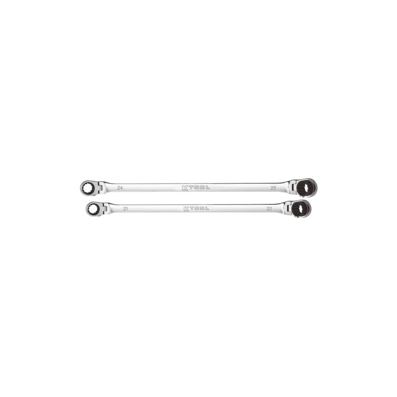 K Tool International XDDBM4 2 Piece Reversible Double Box Ratcheting Wrench Set for Garages, Repair Shops, DIY, Universal Spline, 90 Tooth Design, 180 Degree Flex Head, Raised Box, 21, 22, 24, 25MM