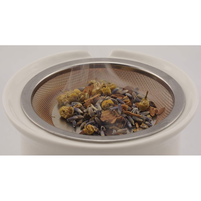 - The warmer has a height of 11 cm and a you of 8.5 cm. The stainless steel strainer included in the set has a diameter of 8 cm. The metal disc of approx. 5 cm.