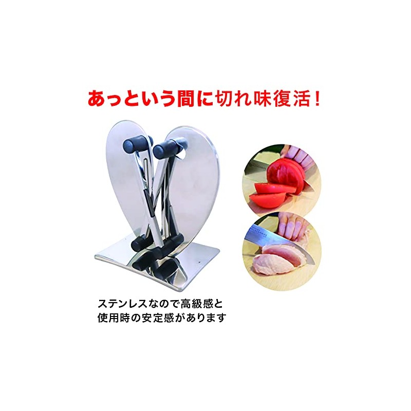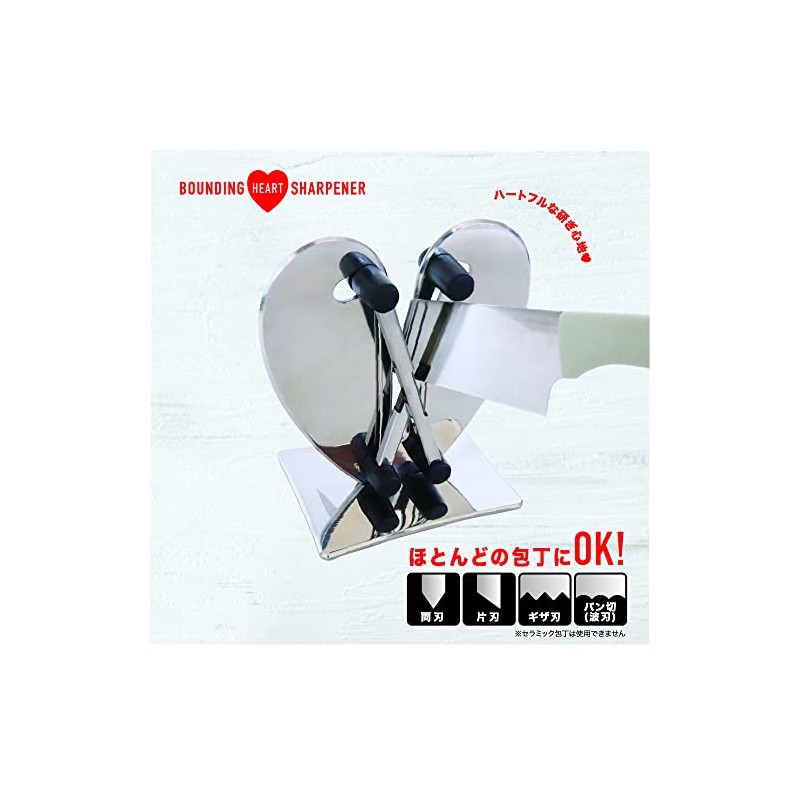 - Rejuvenates sharpness in no time. BOUNDING HEART SHARPENER. The whetstone bounces to match the shape of your knives, so you can sharpen a variety of knives (*). Also works great with the popular Superstone Barrier series and Bugen knives. BOUNDING HEART SHARPENER FEATURES: The whetstone bounces to match the shape of the knife to sharpen it sharp. Can be used with most knives such as double-edged, single-edged, serrated blade, bread cutting (wave blade) (*). The sharpness will be restored in seconds. Made of stainless steel, so it feels luxurious and stable when using. There are multiple types of knives, but you want a sharpener that can be used in a common manner. Recommended for those who think so. Cannot be used with ceramic knives
