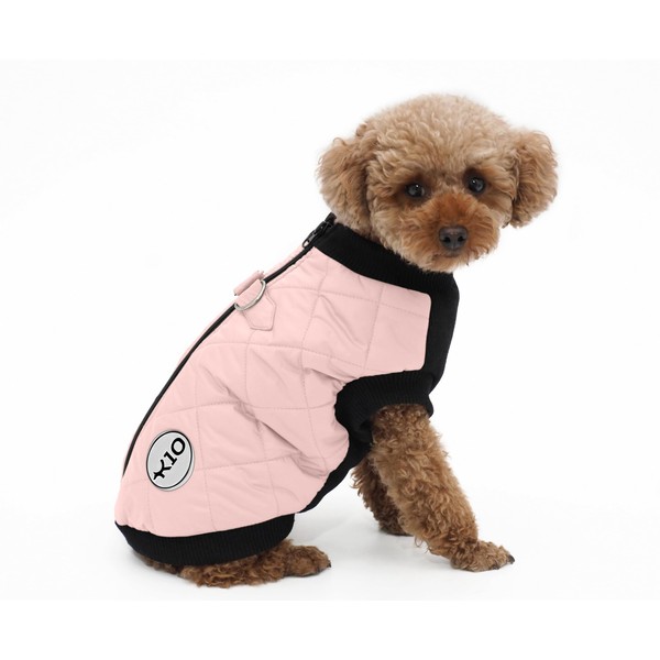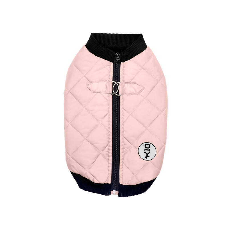 K10 Quiltee Coat - Warm Dog Coat with Leash Attachment - Water Resistant Jacket with Leash Ring - Built in D Ring Harness - Fleece Lined Vest - Lighter Than a Sweater - (XXXS, Baby Pink)
