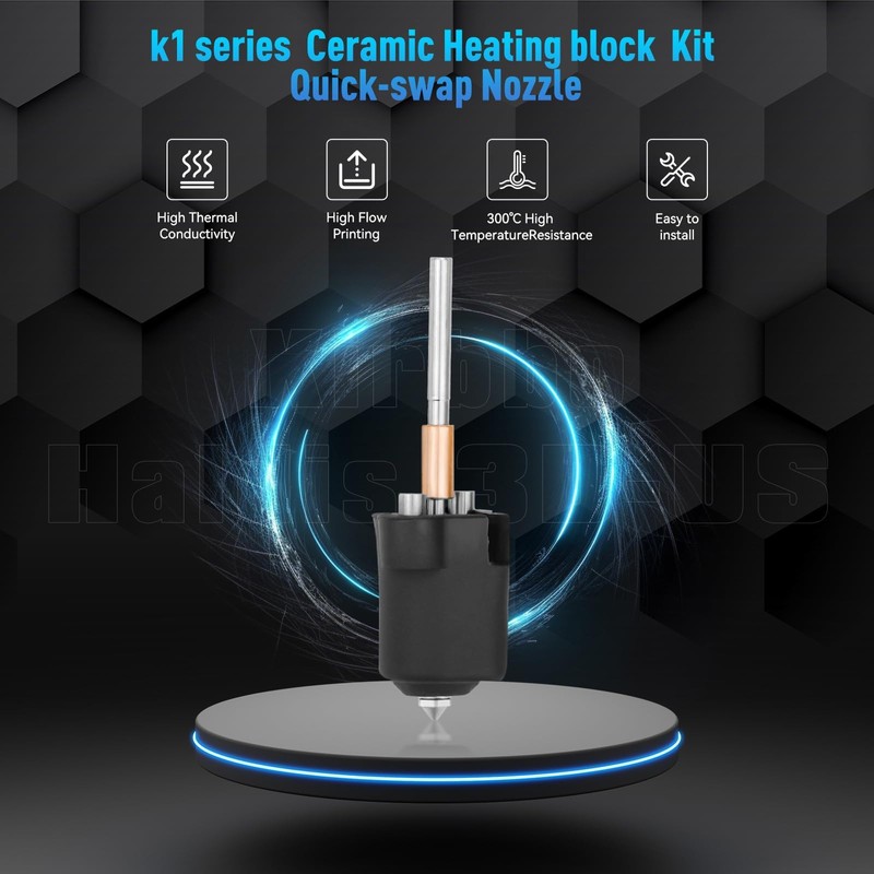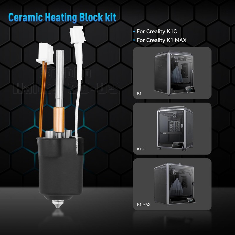 - ※【 Hotend Kit for K1C】This Ceramic Heating Block Kit is compatible with Creality K1C for high-speed printing. 360° surround ceramic heater improves heating efficiency, more uniform heating and faster heat transfer. It can be heated to 200°C in 40 seconds.