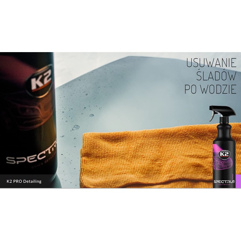 - K2 SPECTRUM PRO is the shining hero based on synthetic wax. A quick detailer designed for quickly refreshing and enhancing the paint and other surfaces. Plastics, rubber, chrome elements – nothing is a challenge for it. It instantly transforms their appearance and provides a spectacular, competition-ready finish.Without hesitation, it deals with dust, fingerprints, or fresh watermarks.
