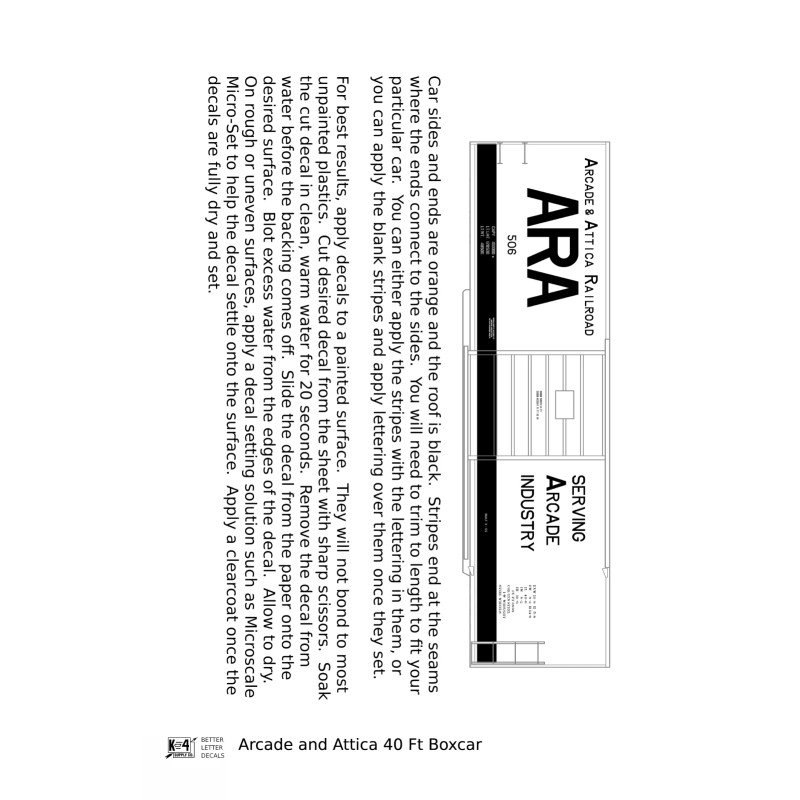 K4 O Scale Decals Arcade and Attica 40 Ft Boxcar Black and White
