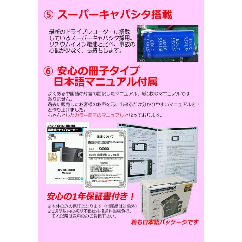 K6000 Dash Cam with G-Sensor, HDMI Output, Motion Sensor, Automatic Recording, Security Camera