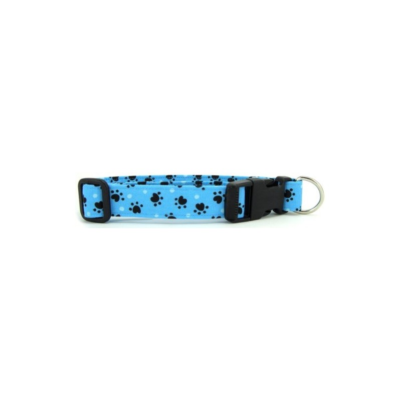 Heart paws on aqua background dog collar. Medium size is 1 inch wide and adjustible from 12-18 inches