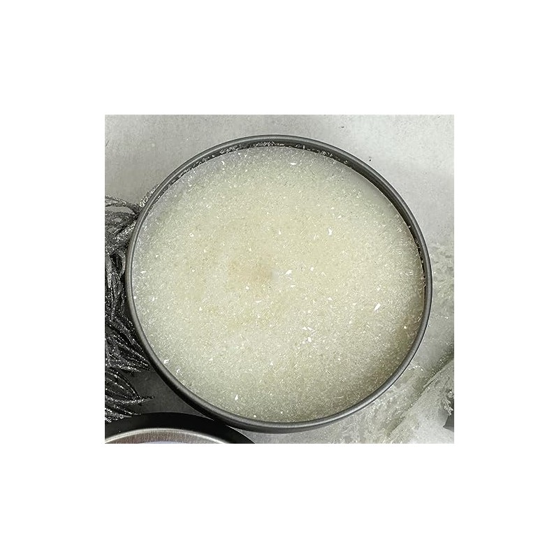 - Each candle is topped with diamond dust that sparkles and glistens on intial lighting, then will give way to the sparkle and shine of the snowflake mica powder infused within the wax. Just lovely. Each candle comes in a silver metal tin and silver gift box and is ready to be gifted.