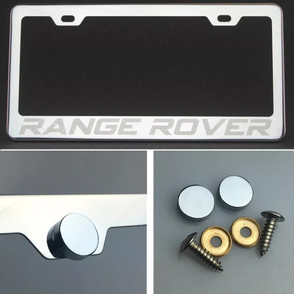 KA DEPOT Range Rover Laser Engraved Stainless Steel License Plate Frame Chrome Screw Cap