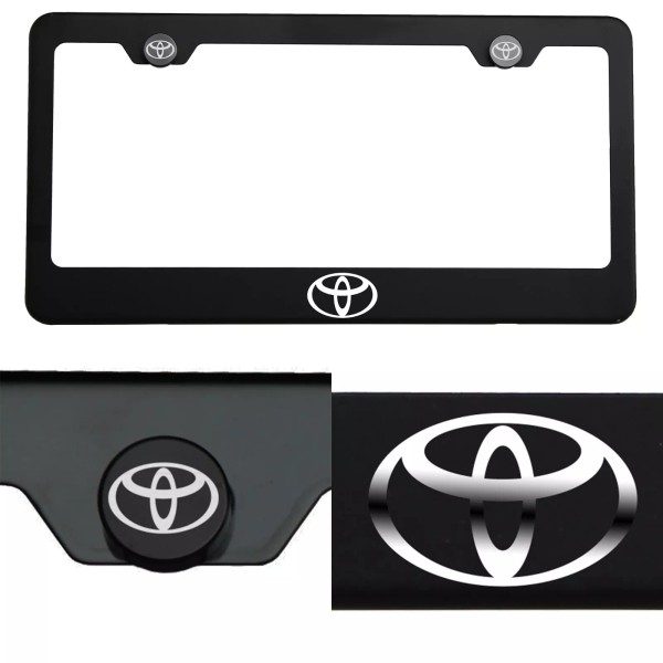 KA Laser Engraved Toyota Logo Mirror Matte Black License Plate Frame StainlessSteel