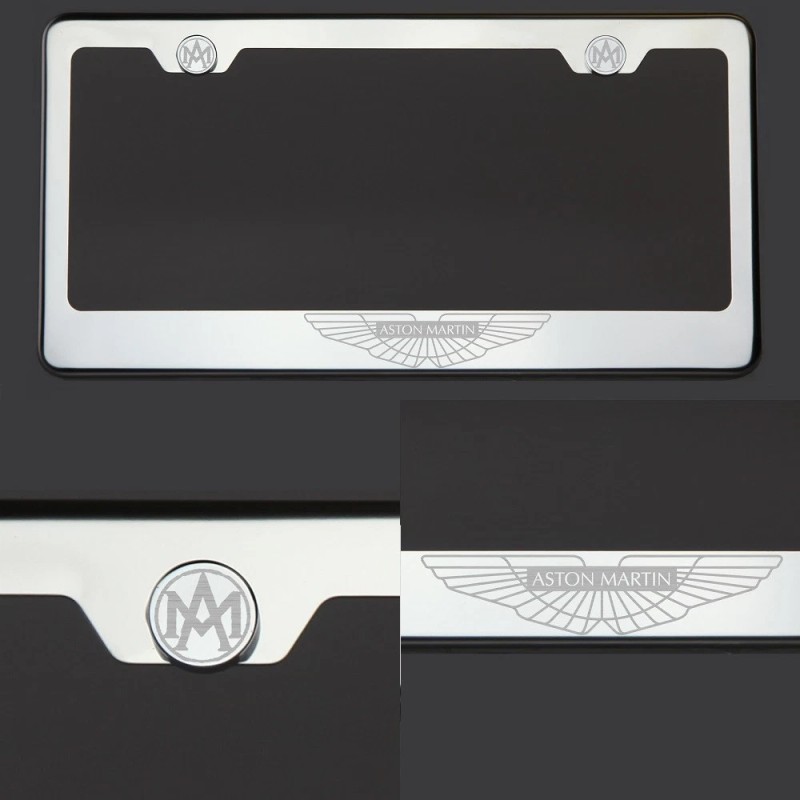 KA T304 Chrome Polished Aston Martin Logo Laser Etched Engraved license Plate Frame