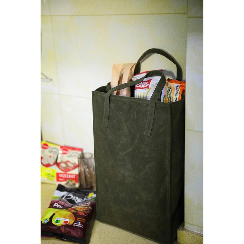 Kaaltisy Waxed Canvas Shopping Bag, Waxed Shopping Bag, Reusable Waxed Canvas Shopping Bag, Green-large