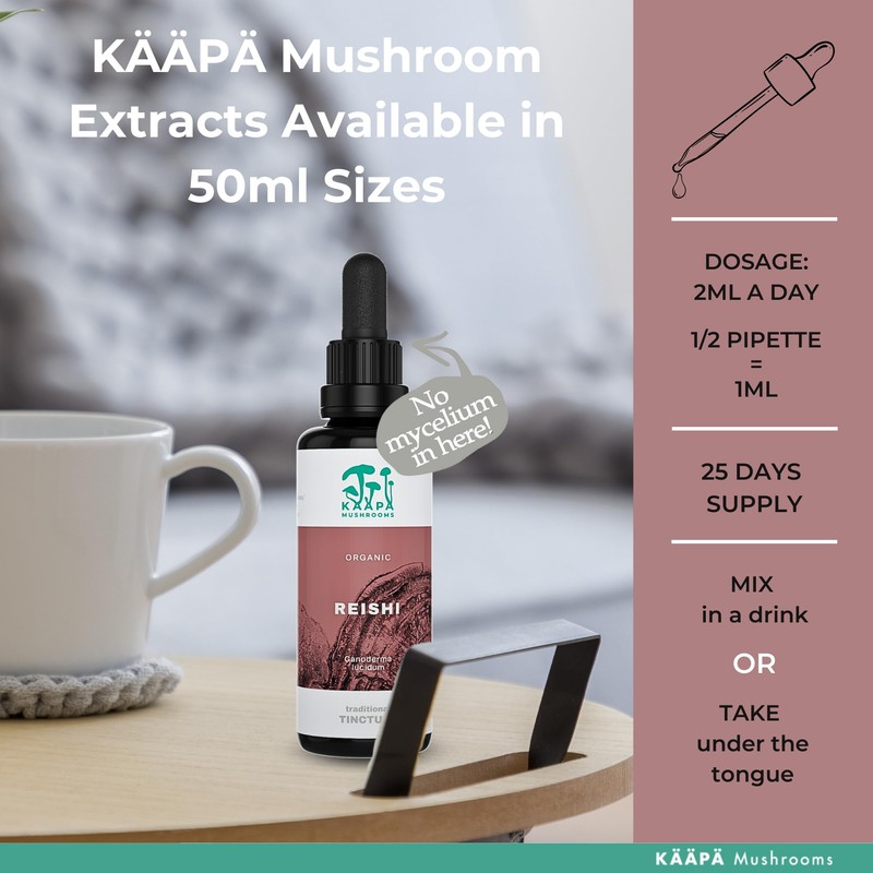 KAAPA Mushrooms KAAPA MUSHROOMS - REISHI Mushroom Extract Tincture - Potent Ultrasonic Extraction | High Potency Mushroom Supplement for Relax, Sleep & Immunity | Grown in Finland - 50ml