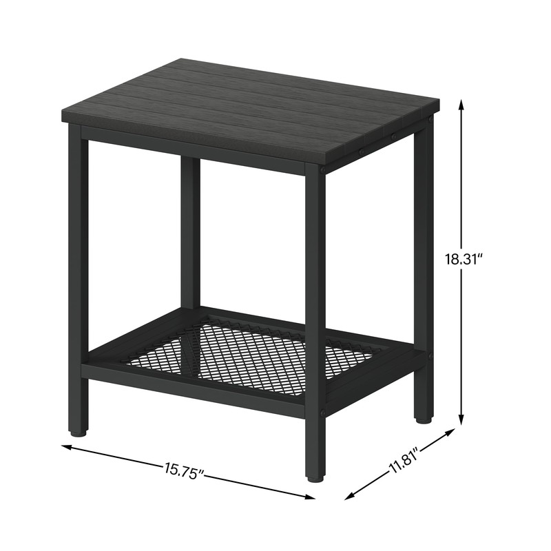 KAAPSAM Outdoor Side Table with Storage, 2-Tier Patio End Tables Weather Resistant, Black Outdoor Accent Table,Small Side Table for Pool, Deck, Garden