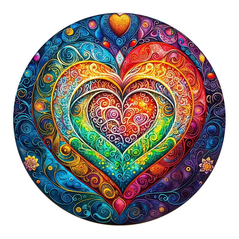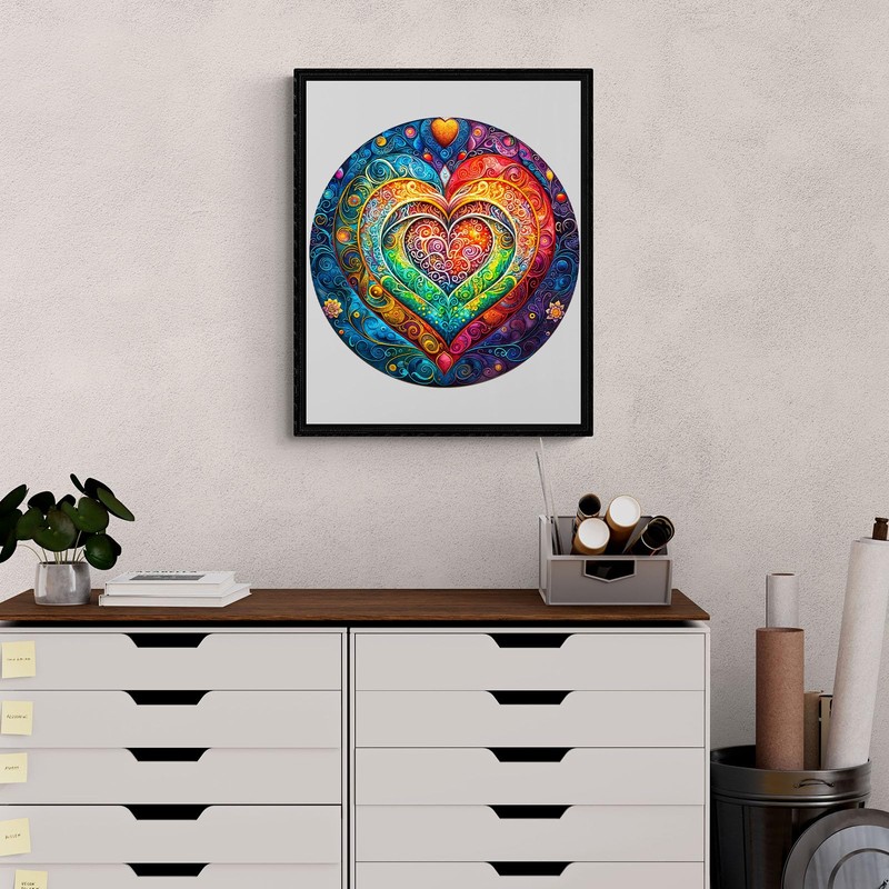 KAAYEE Wooden Puzzles for Adults, 3D Visual Effect Mandala Heart Wooden Jigsaw Puzzle Unique Shape Wood Puzzle Adult, 3D Effect Flat Puzzle Birthday Family Game (M-11.4 * 11.4 in-200pcs)