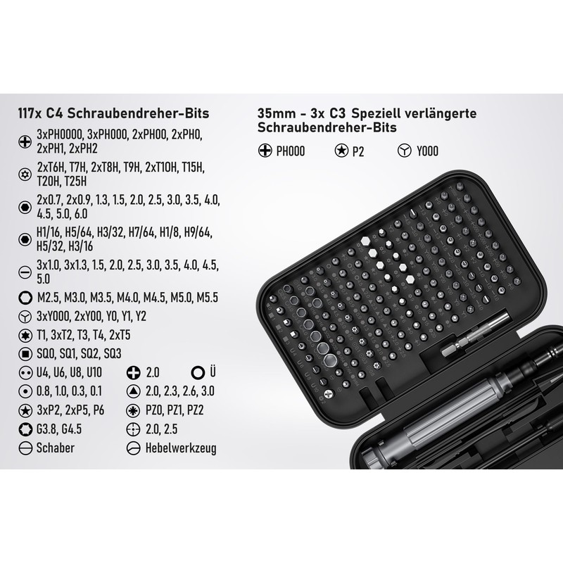 kabelmeister® Precision Screwdriver Set 150 Pieces Including 117x C4 Bits 3x C3 Bits