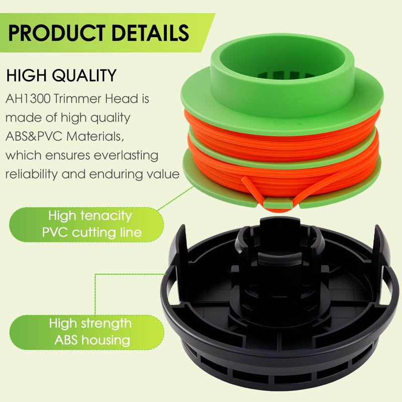 - AH1300 Trimmer Head is designed for easy and quick installation and replacement,do not need special tools or specialized knowledge to complete the operation,which greatly saves the time cost of maintenance and replacement of consumables