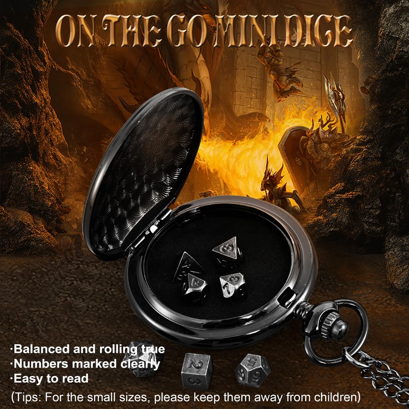 - Carrying Convenient:The pocket watch case comes with a necklace that can carry 7 pcs metal dice wherever you go;You don’t have to worry about not being able to play impromptu games without the dice;You can start an exciting adventure at any time