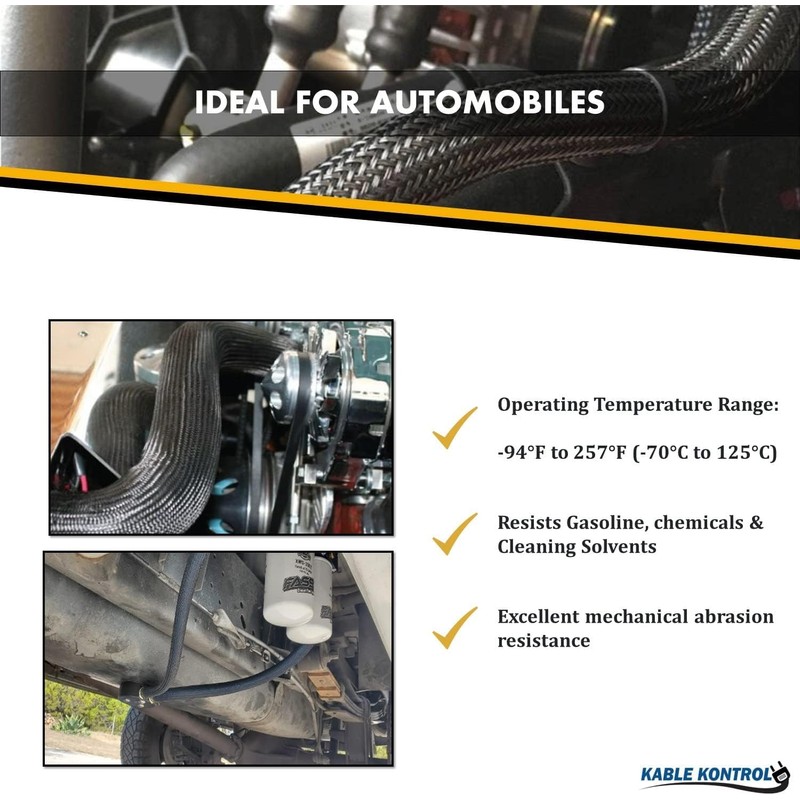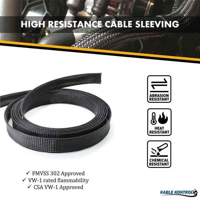 - HIGH RESISTANCE: This sleeving has high resistance to abrasion, heat, chemicals, automotive fluids & solvents