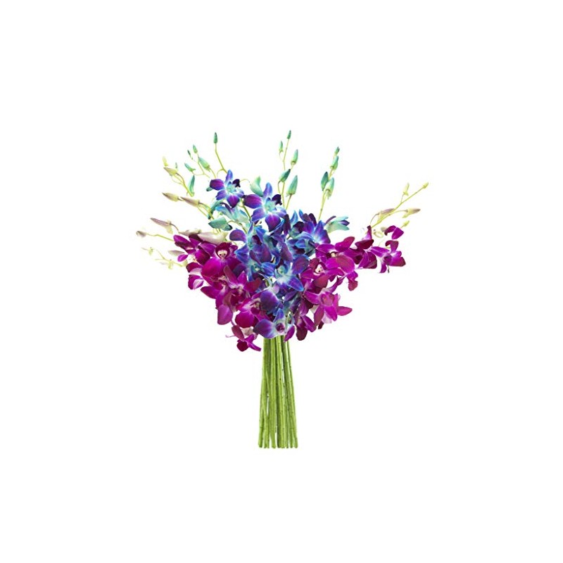 - Bouquet Includes: 5 Blue Dendrobium Orchids & 5 Purple Dendrobium Orchids
