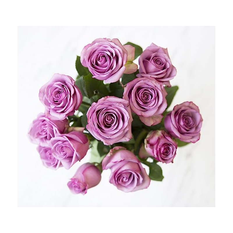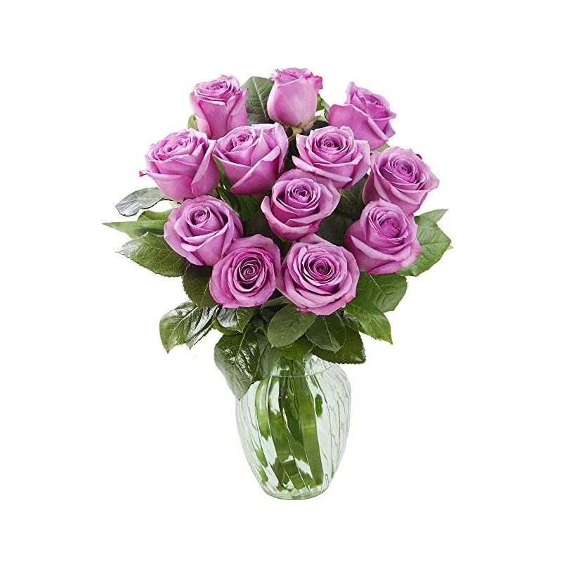 KaBloom PRIME NEXT DAY DELIVERY - Mother’s Day Collection - Himalaya Collection - Serene Bouquet of 12 Purple Roses with Vase Gift for Birthday, Get Well, Easter, Valentine, Mother’s Day Flowers